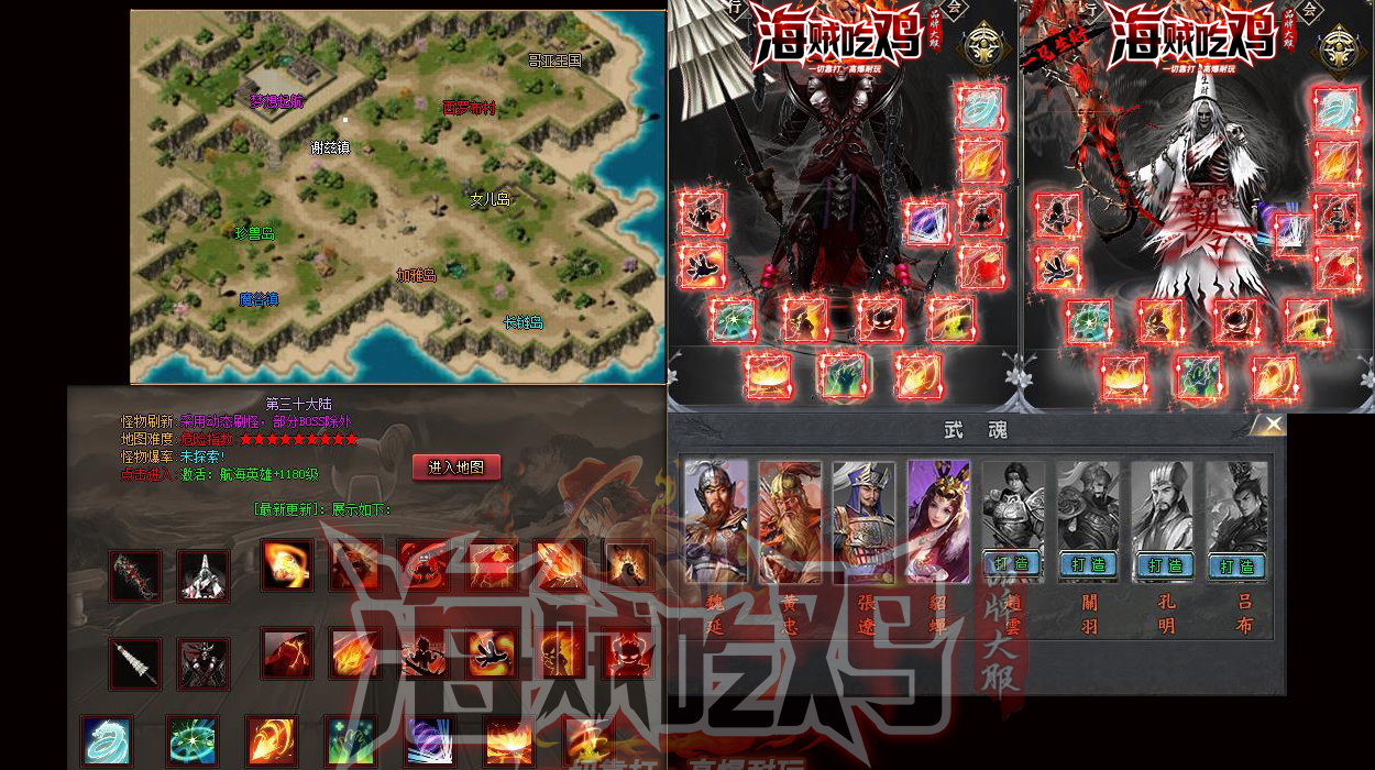 - 【游戏介绍】:|《新海贼吃鸡》本服BOOS种类多,增加了多种BOOS,缩短BOSS刷新时间,都有几率爆出终极。增加打怪乐趣